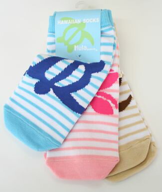 ハワイ雑貨*大胆で可愛いハワイアンなワンポイントが楽しい!【ハワイアン雑貨】ハワイアンモチーフ☆スニーカーソックス 3足組(ボーダー)【あす楽対応_関東】【あす楽対応_東海】【あす楽対応_近畿】【あす